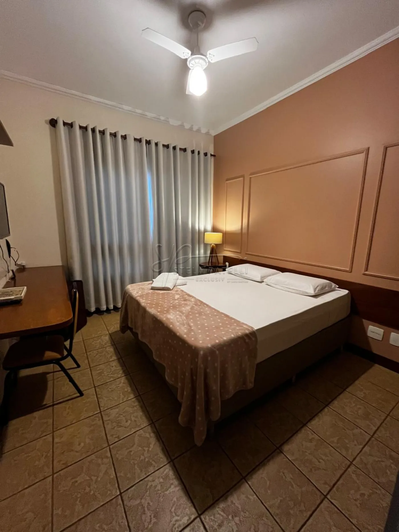 -30 apartamentos com TV, frigobar, camas box, lavatórios de mármore travertino, ventiladores de teto e bancada de trabalho;