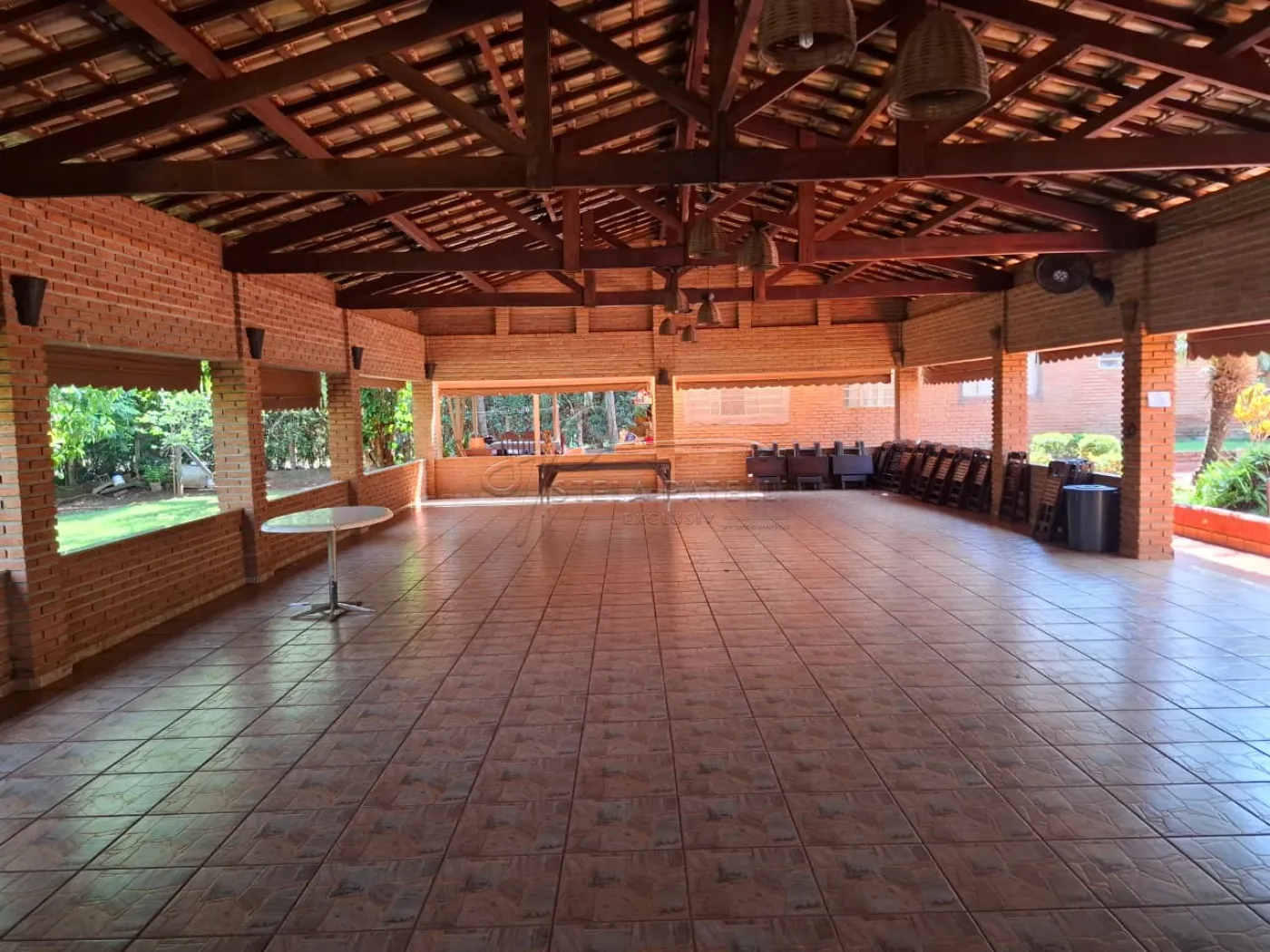 -Salão de festa com cadeiras e mesas;