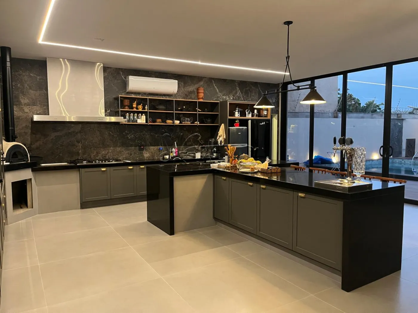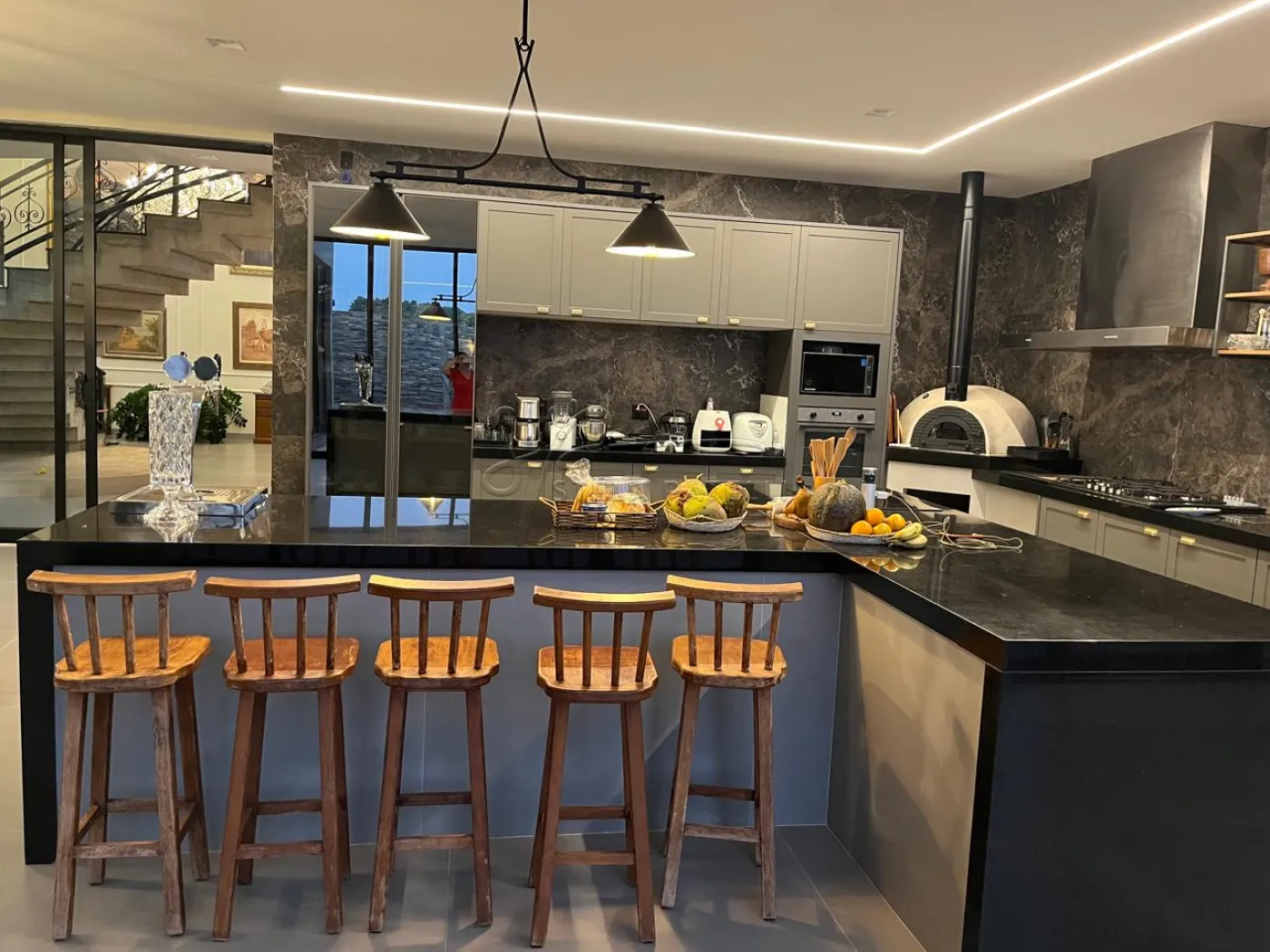 -Cozinha completa em armários com choppeira e forno a lenha;
