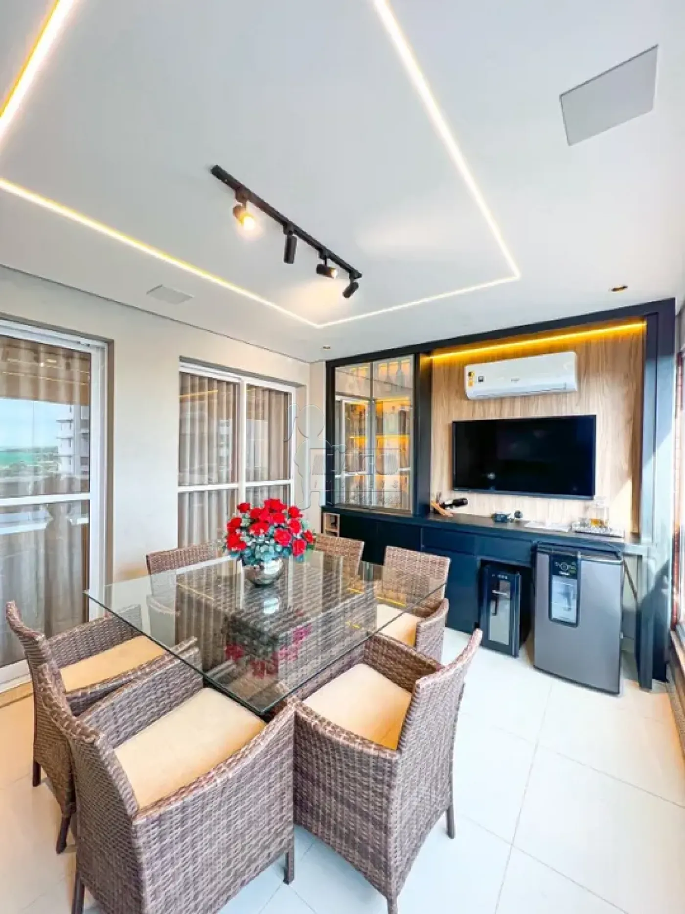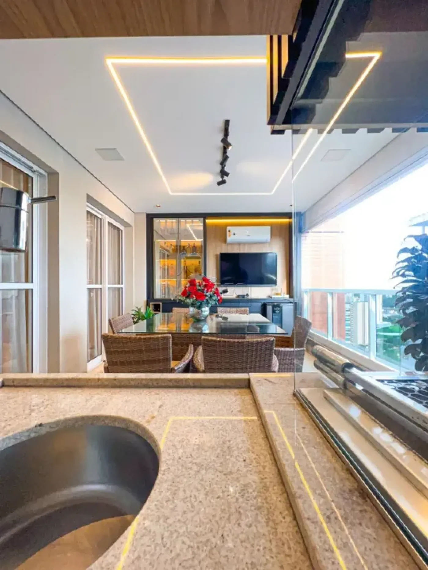 -Varanda gourmet com fechamento em vidros e climatizada;