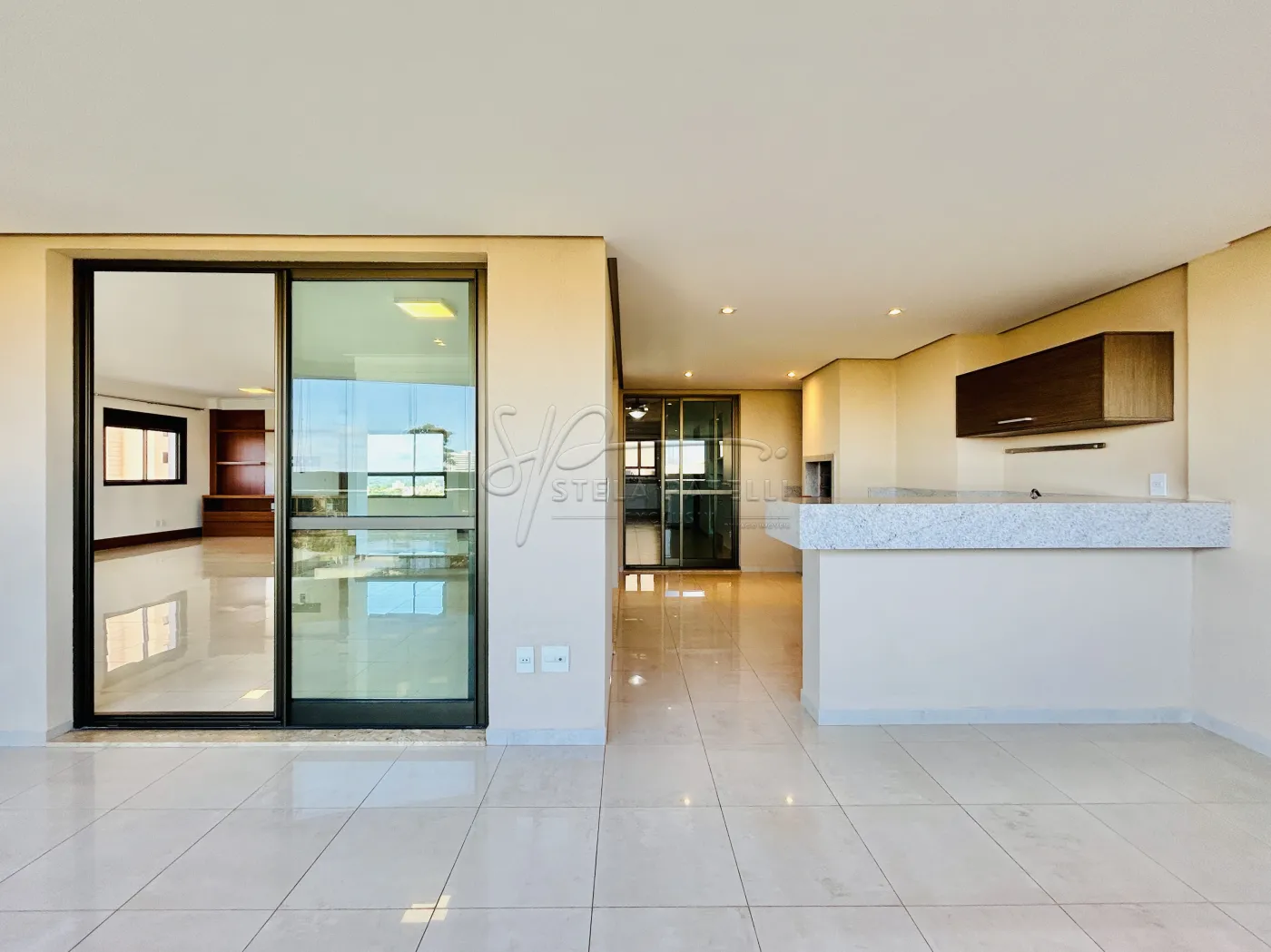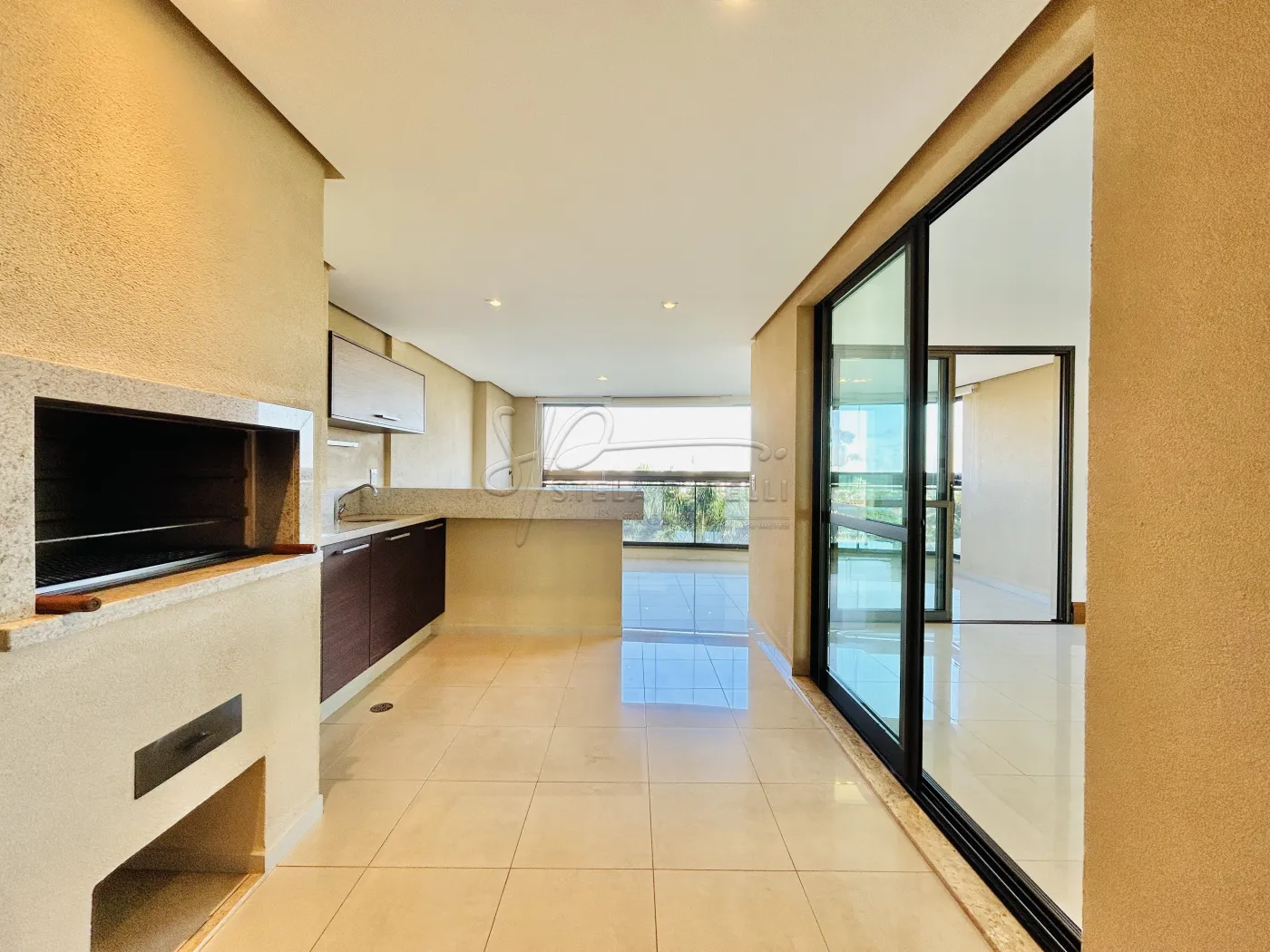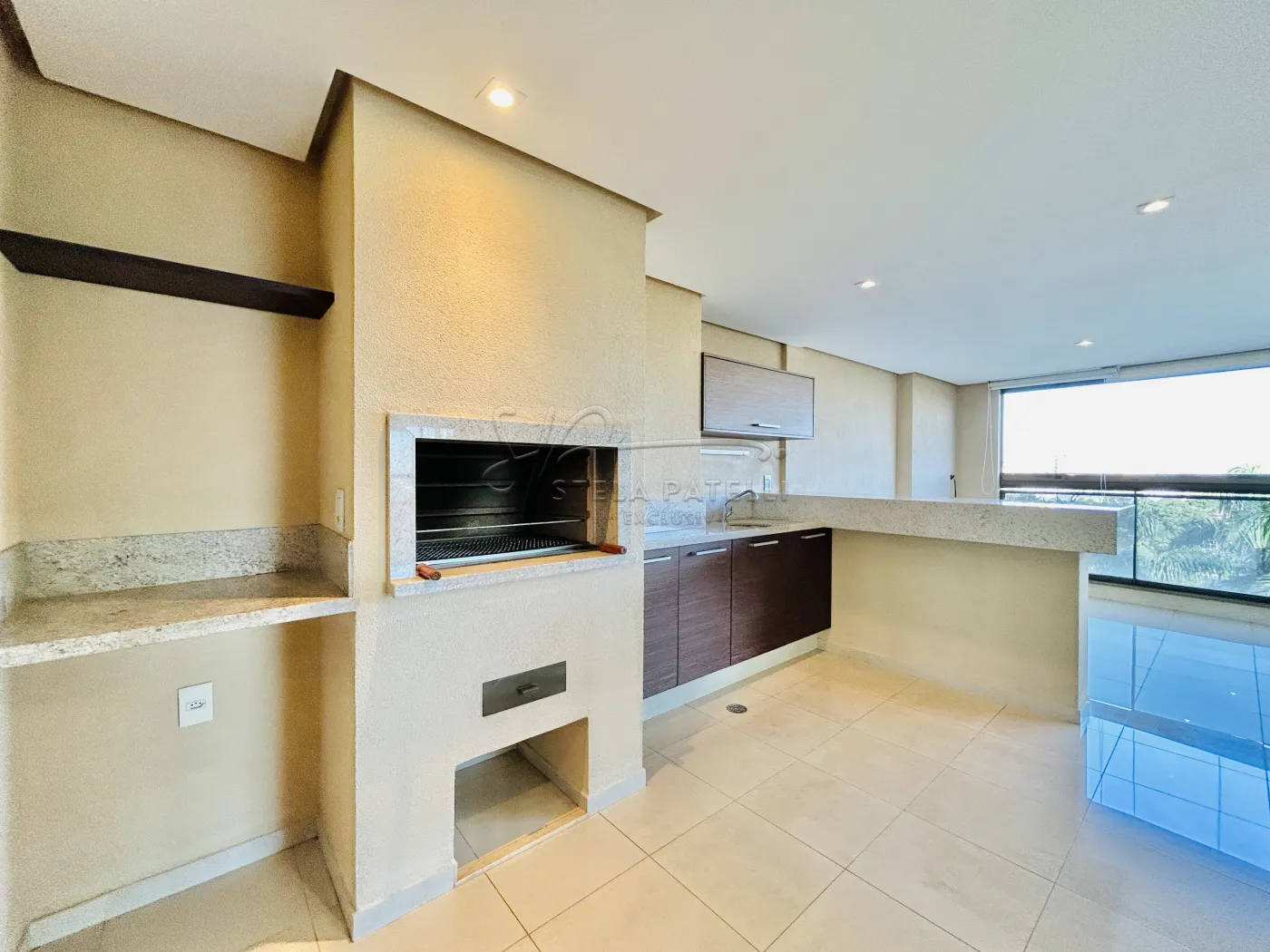 -Varanda gourmet com churrasqueira e fechamento em vidros;