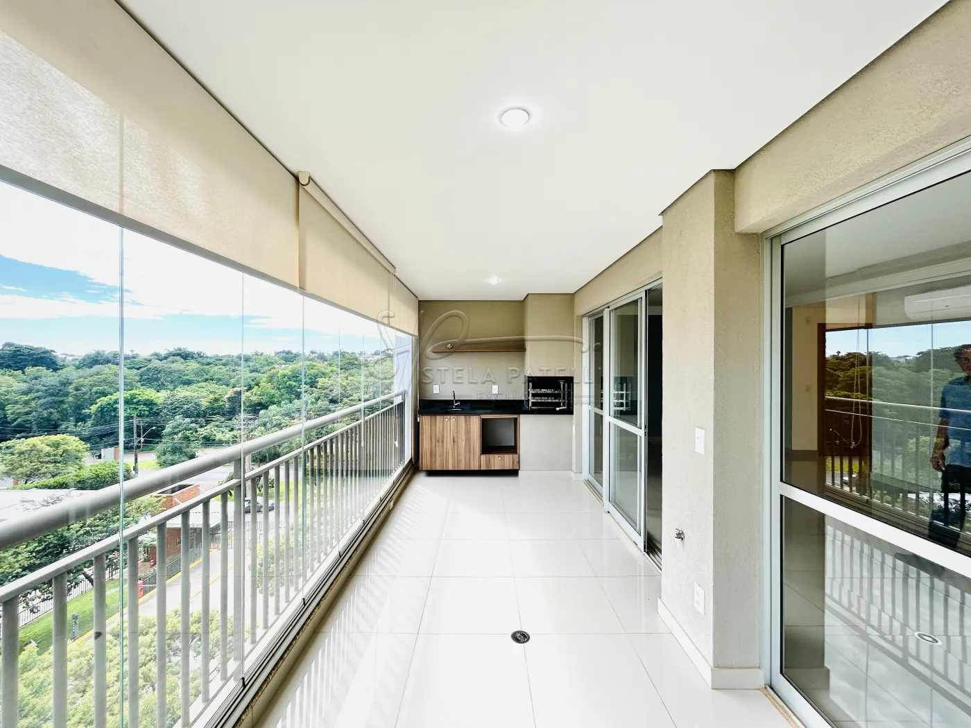 -Varanda gourmet com churrasqueira e fechamento em vidros;