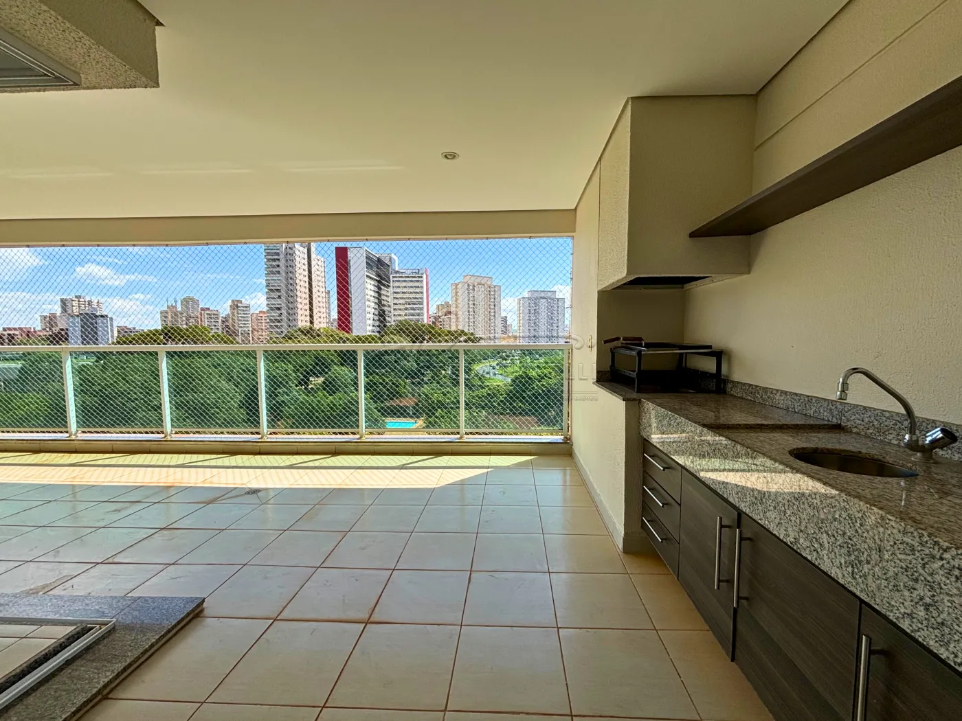 -Varanda gourmet com churrasqueira e fechamento em vidros;
