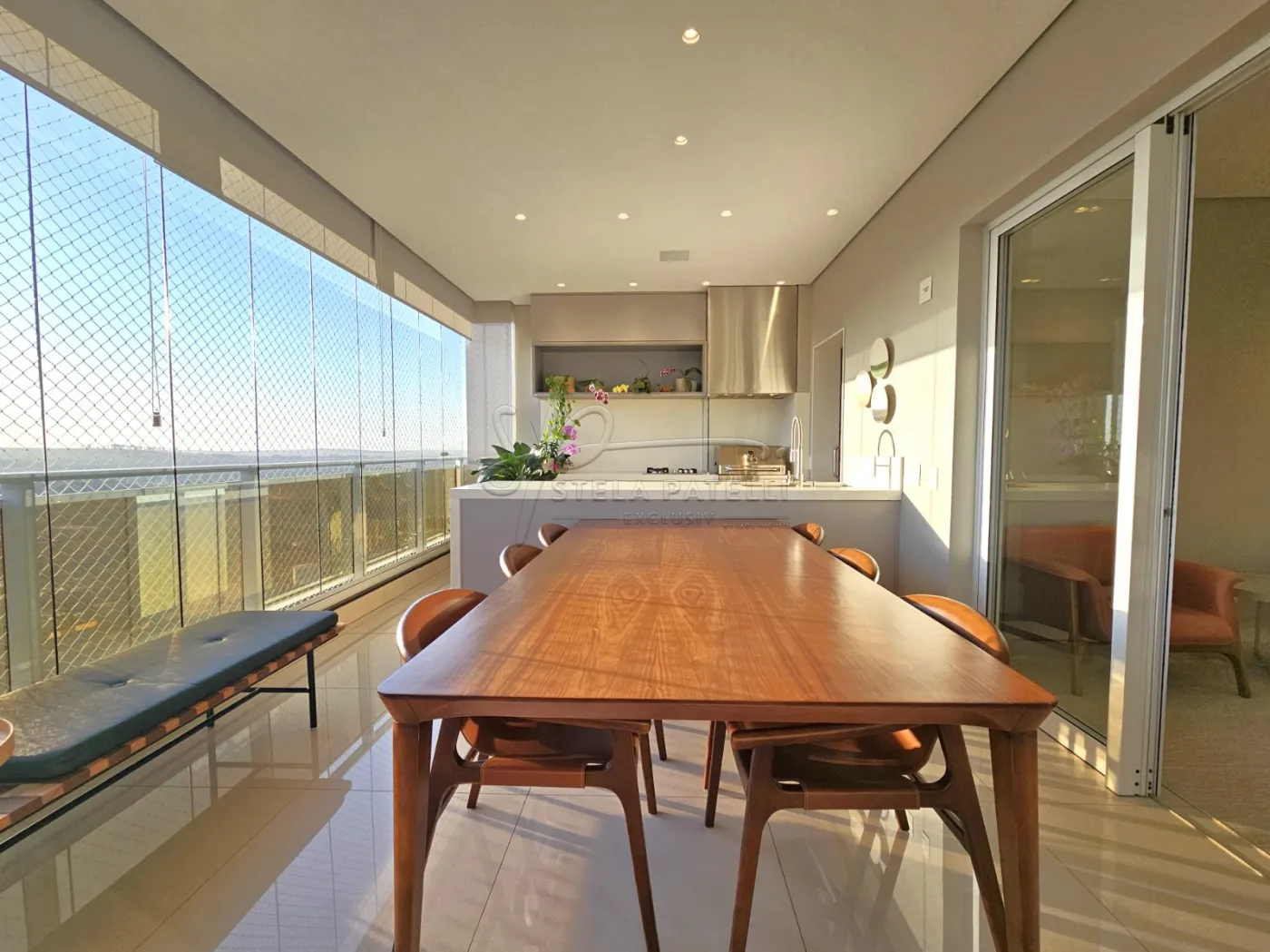 - Varanda gourmet ampla equipada com churrasqueira a gás, cooktop e Fechamento em Blindex