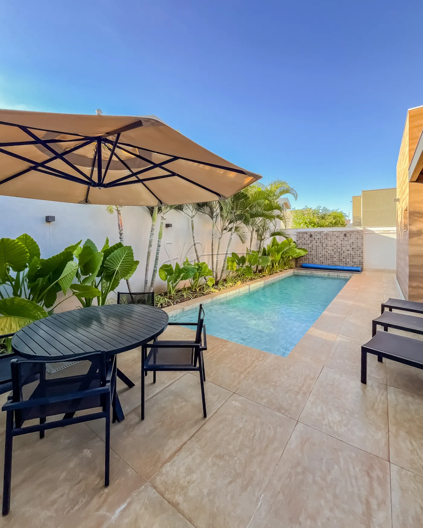 -Toda mobília externa inclusa (mesa com ombrelone, cadeiras e espreguiçadeiras);
