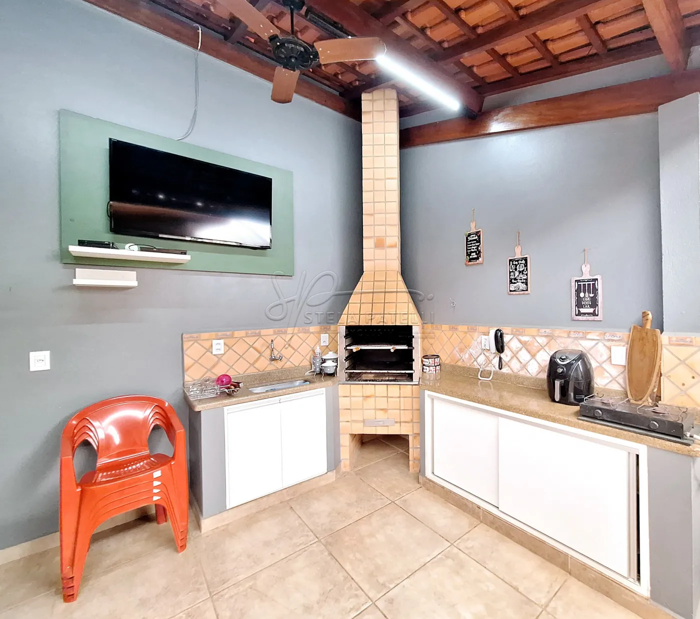 -Área gourmet com churrasqueira e armários;