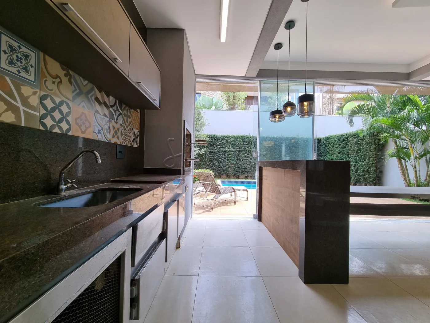 -Piscina com cascata;