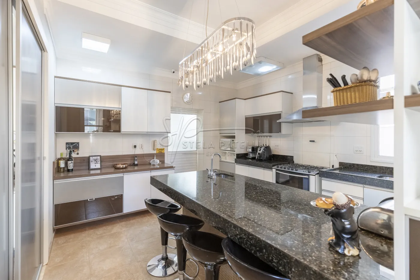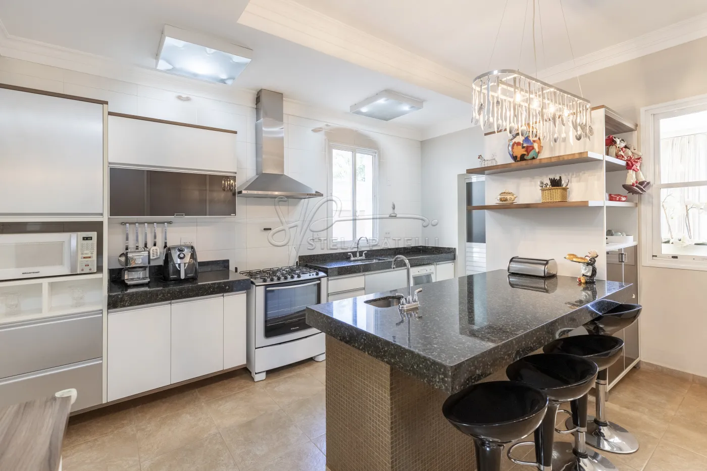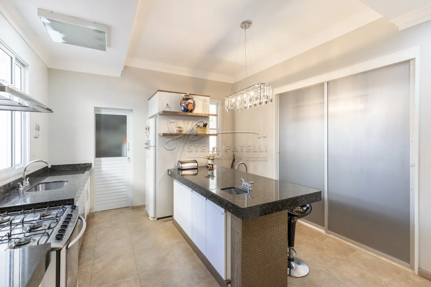 -Cozinha moderna com balcão e ilha;