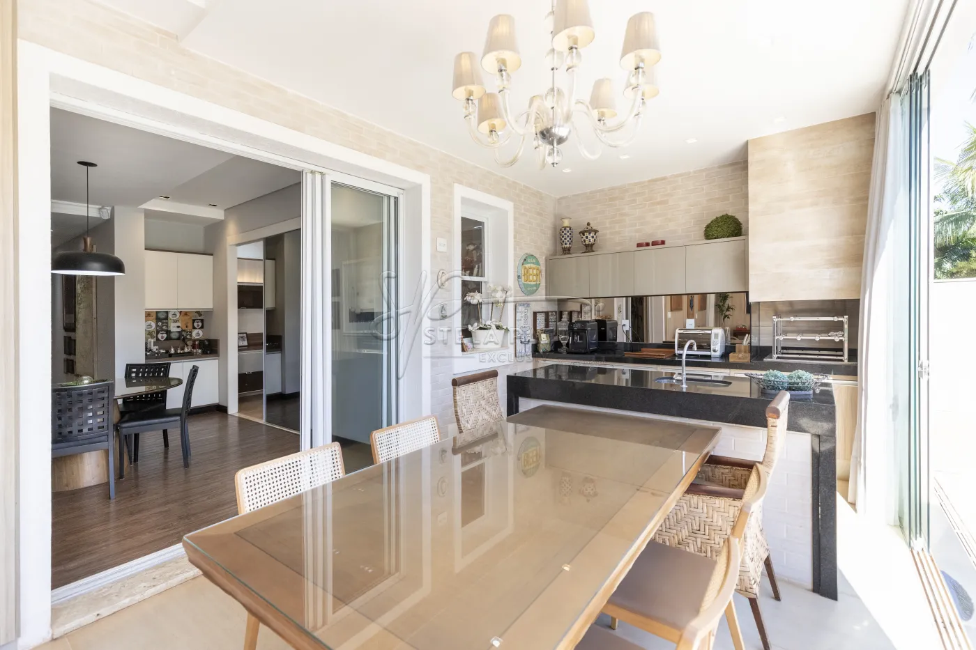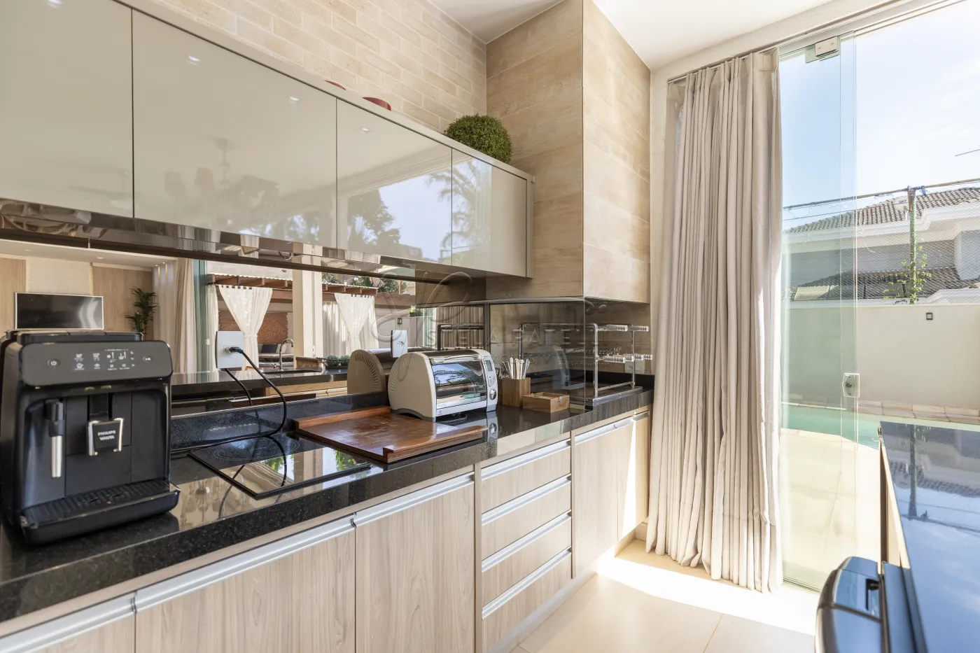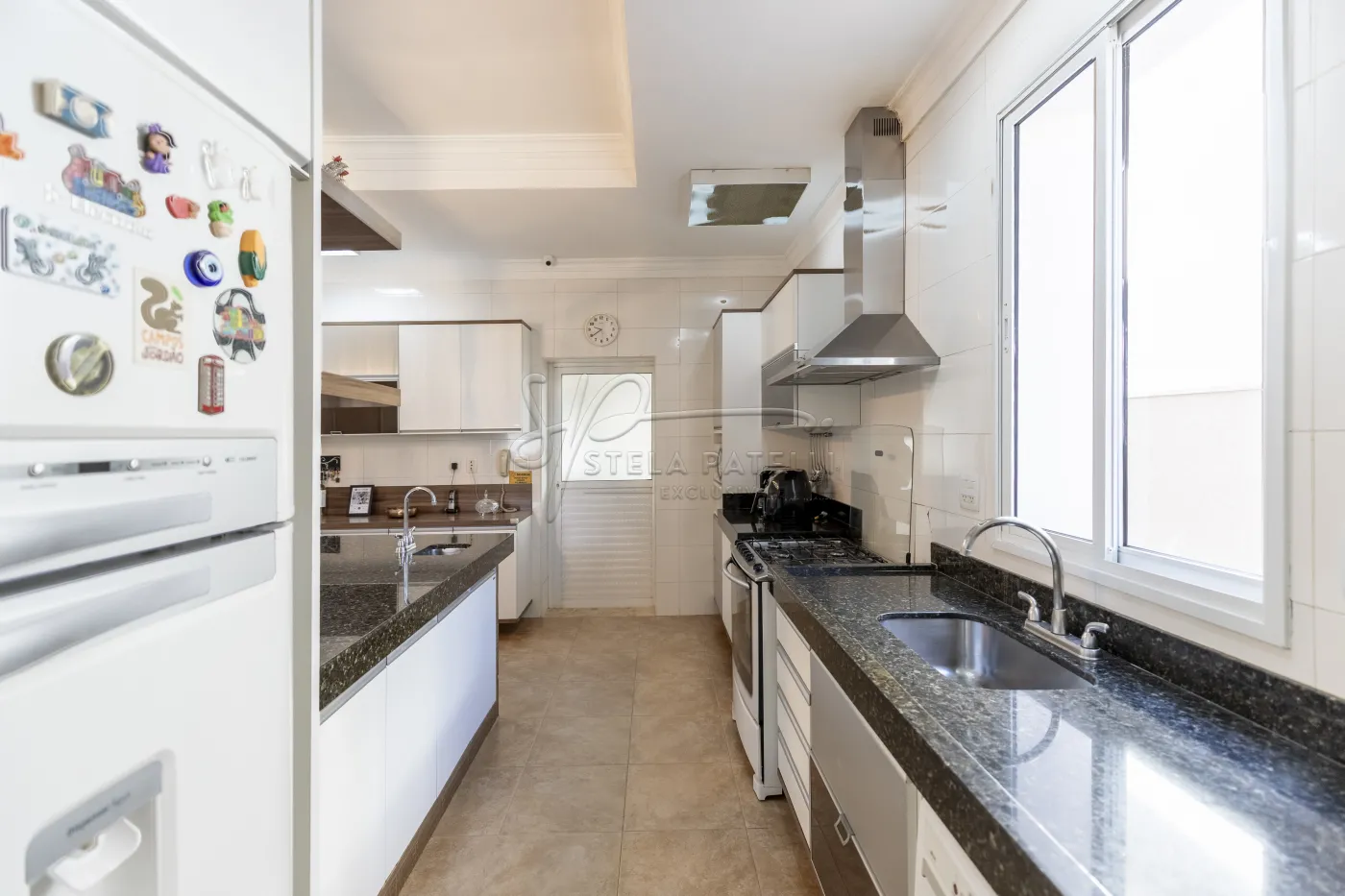 -Cozinha moderna com balcão e ilha;
