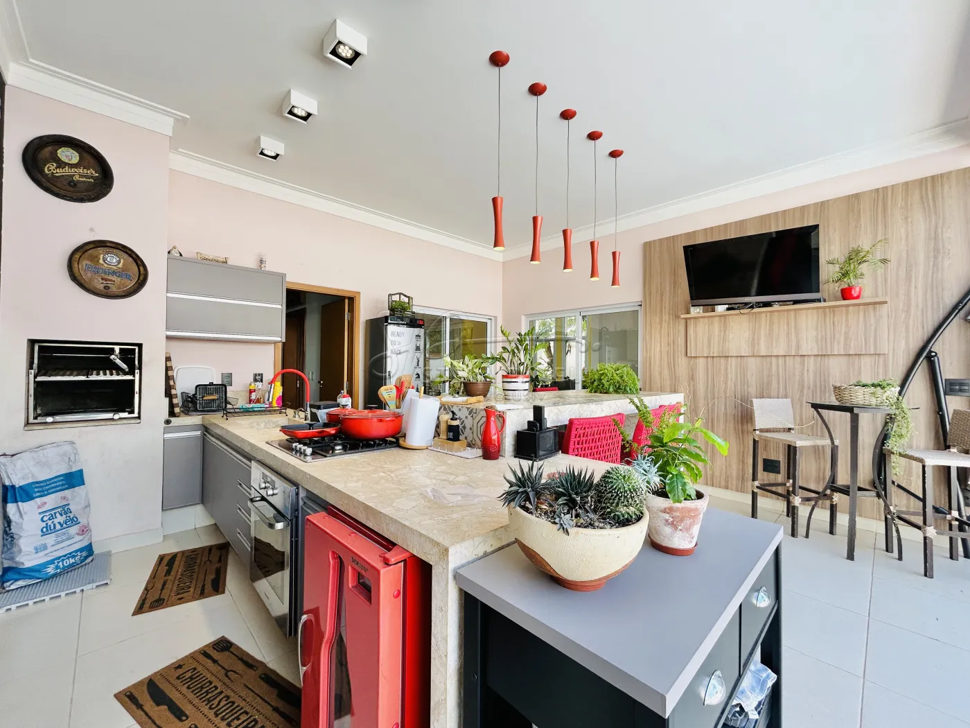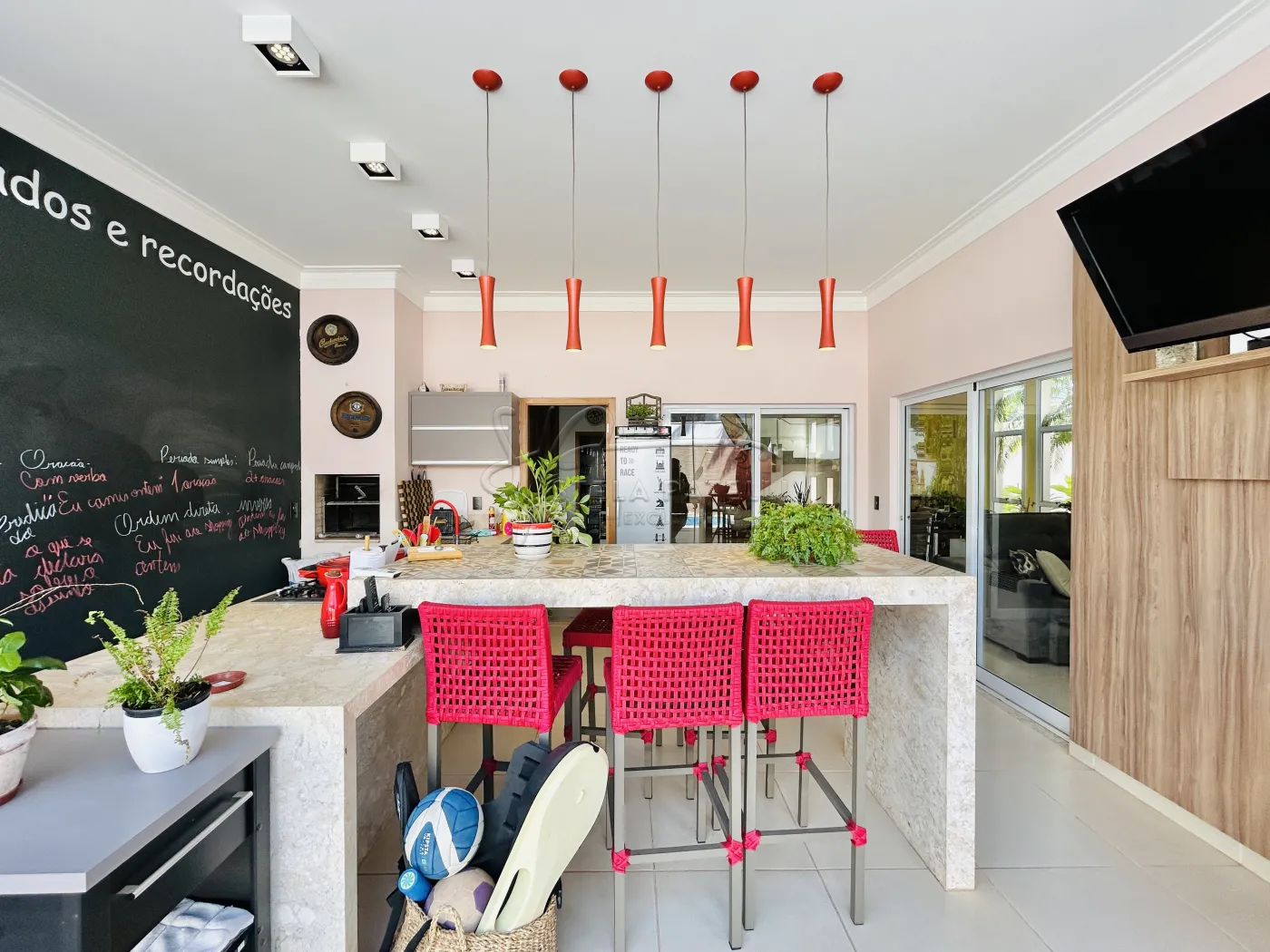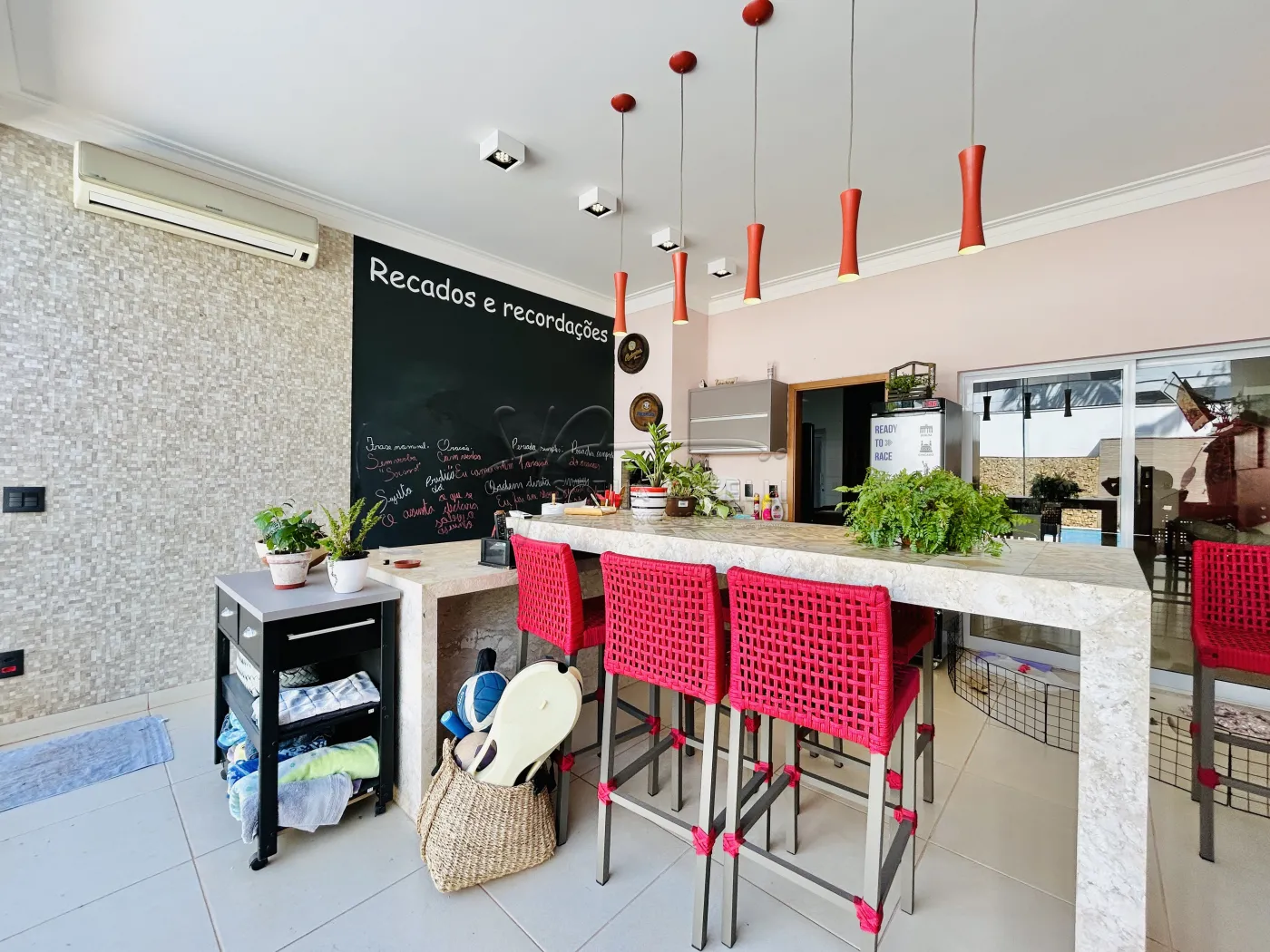 -Varanda gourmet com churrasqueira com fechamento em blindex e ar condicionado;