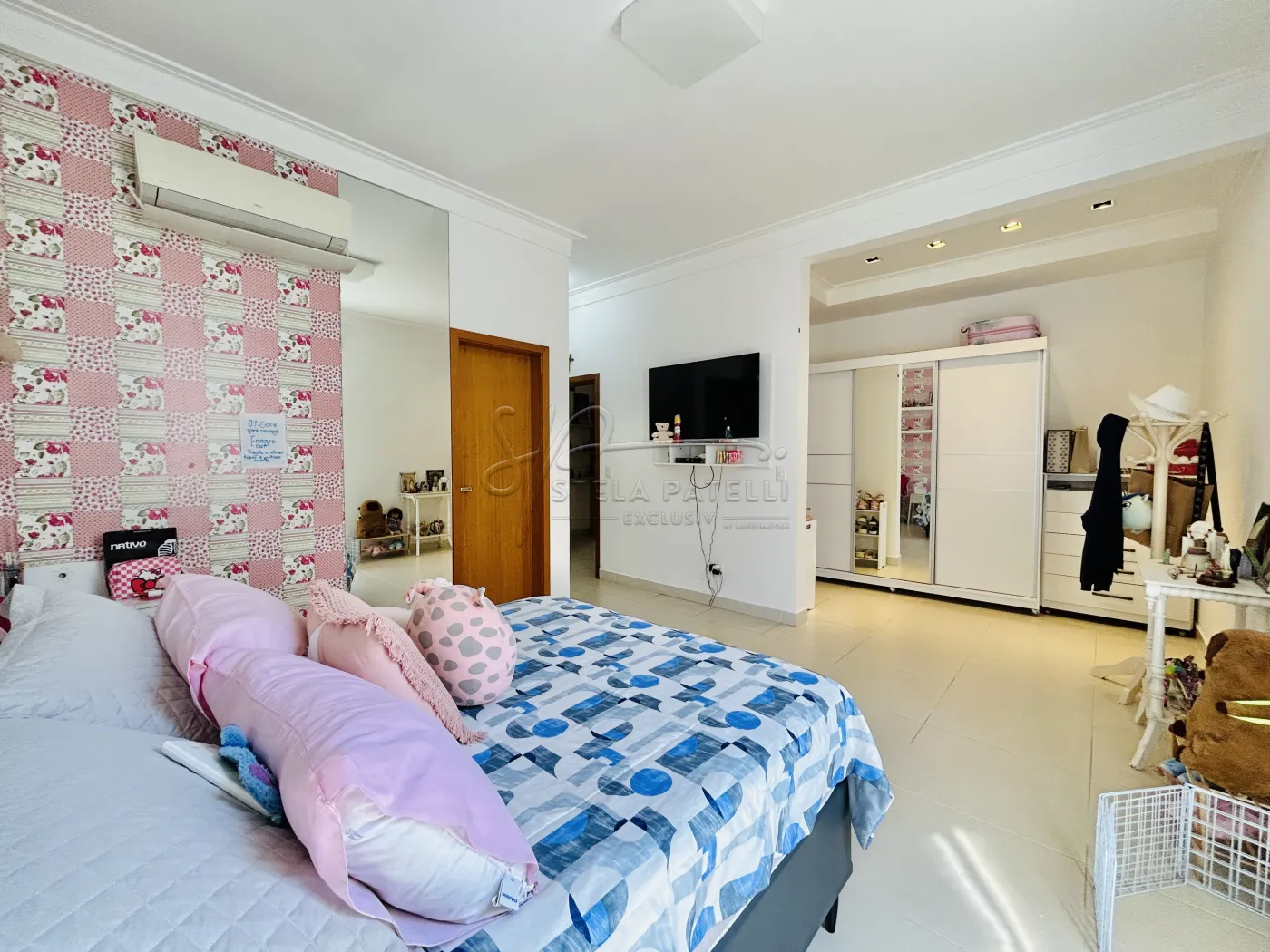 -04 quartos sendo as 03 suítes climatizadas com armários;