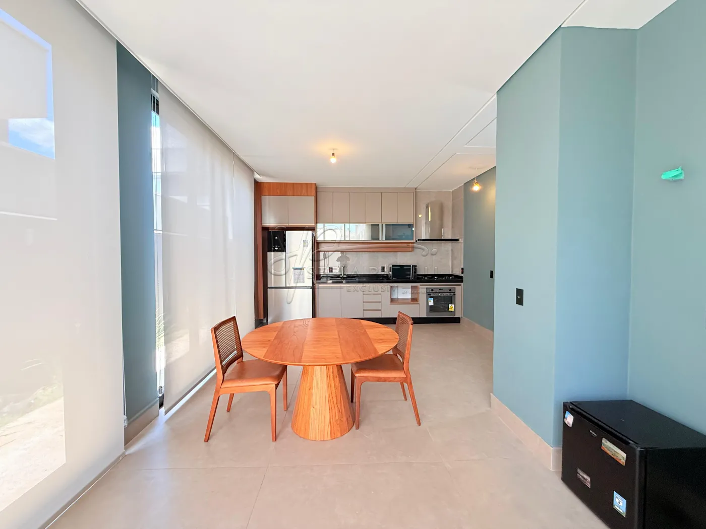 -Cozinha gourmet planejada, fechada em blindex;