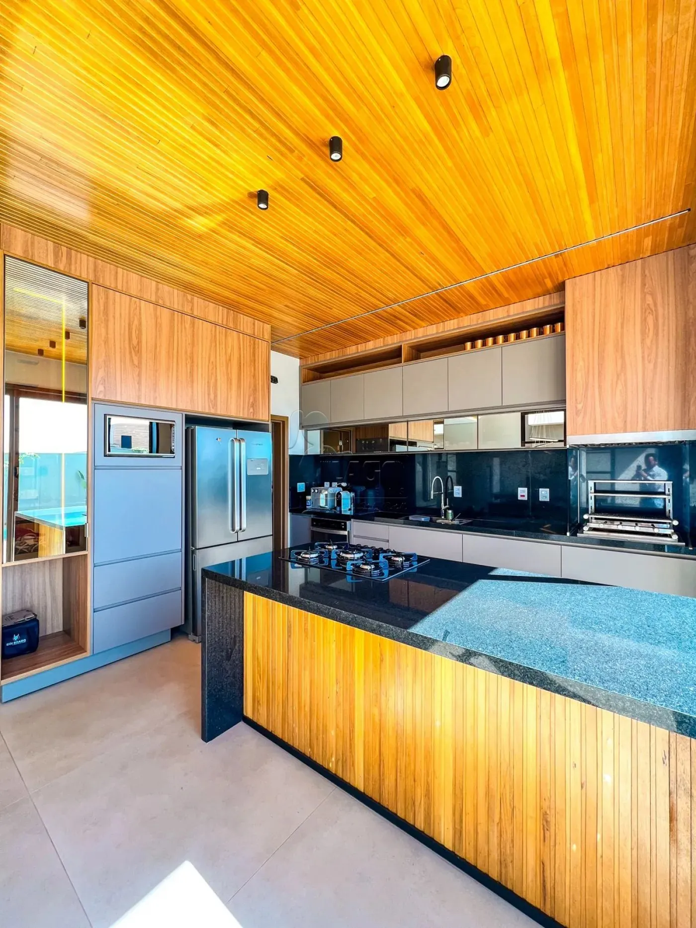 -Varanda gourmet com churrasqueira e ilha;