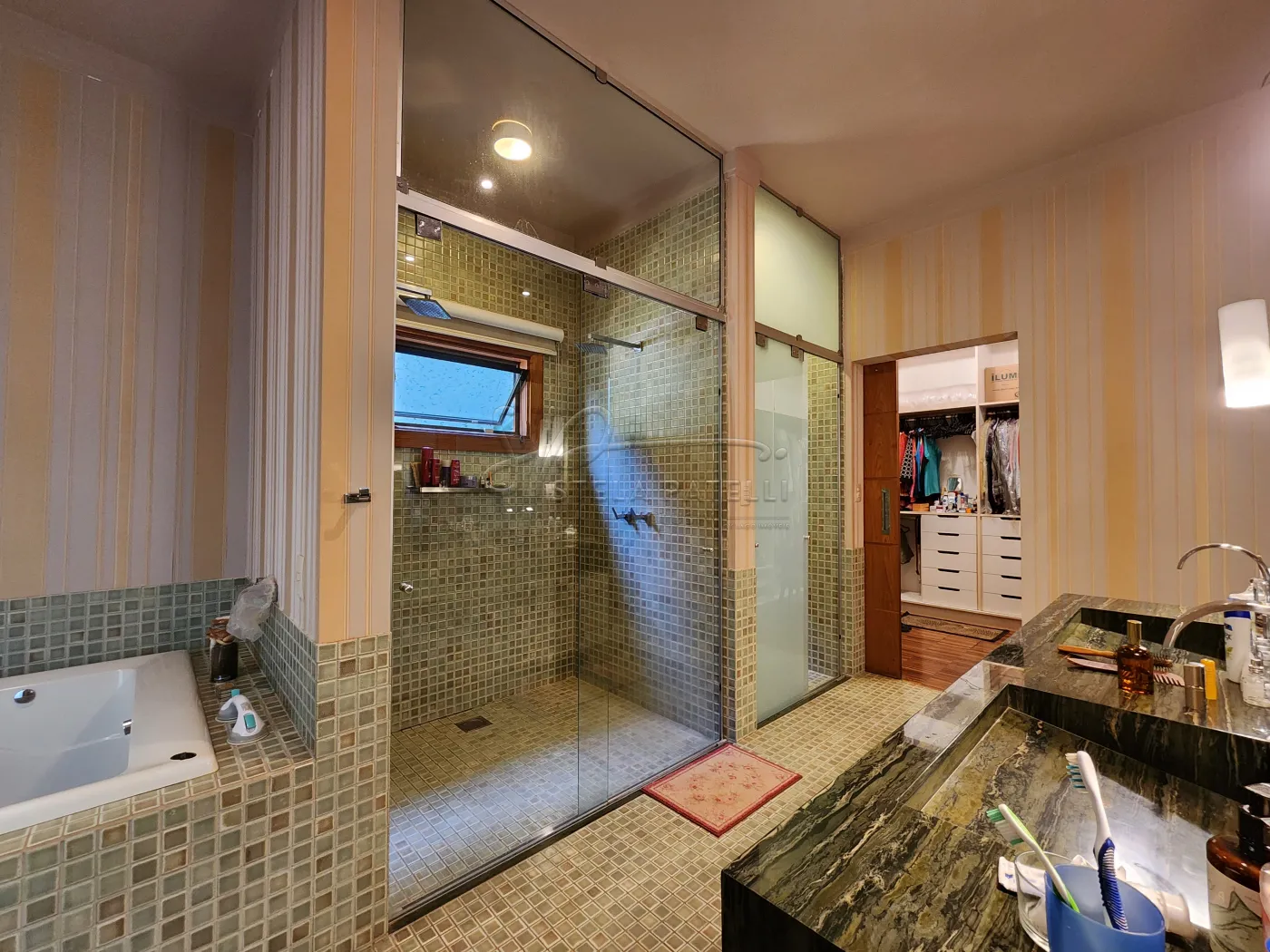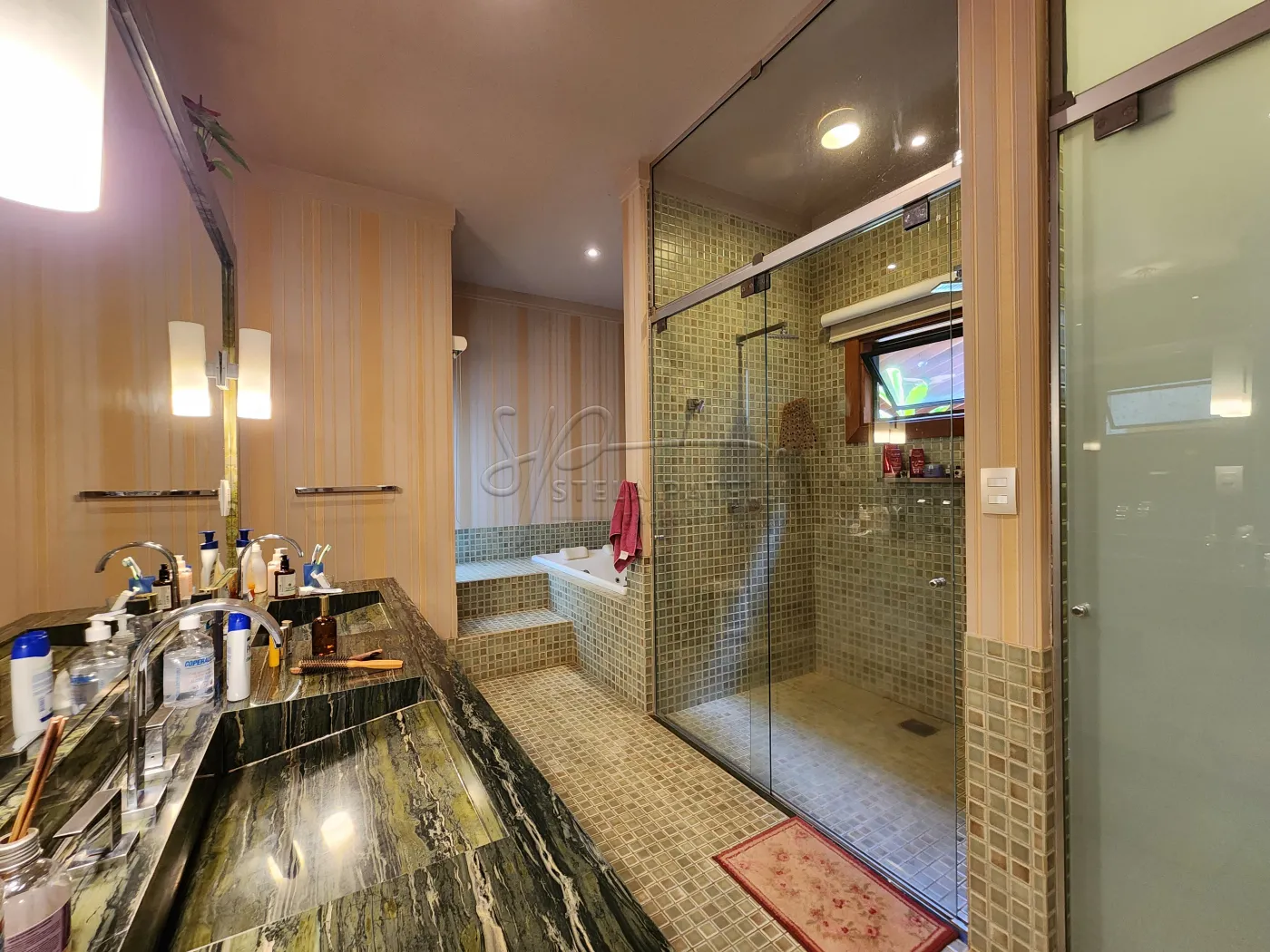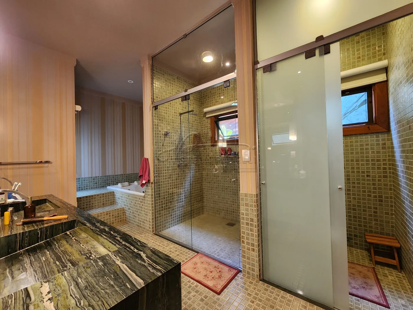 -Bancadas dos banheiros em mármore esculpido;