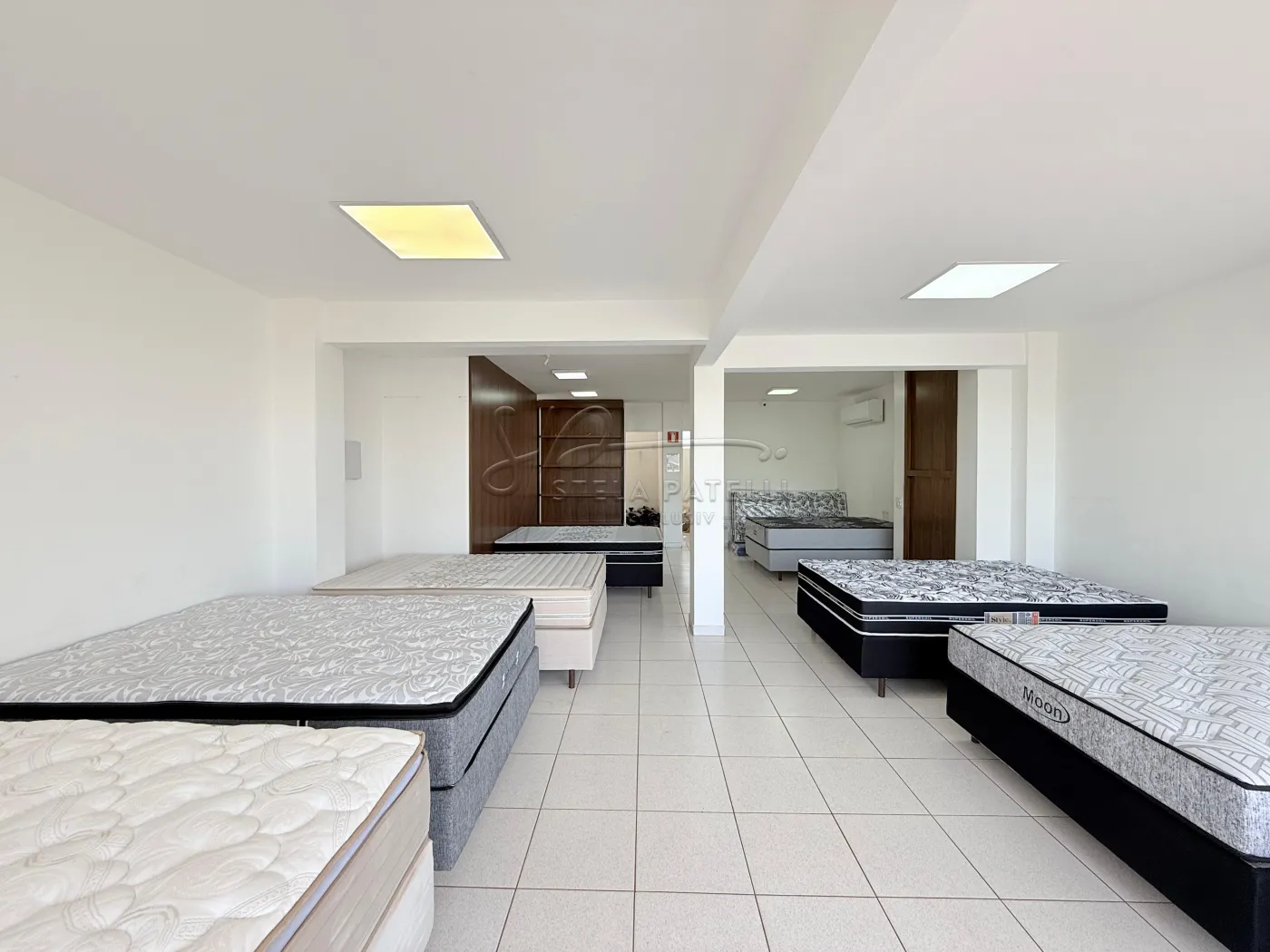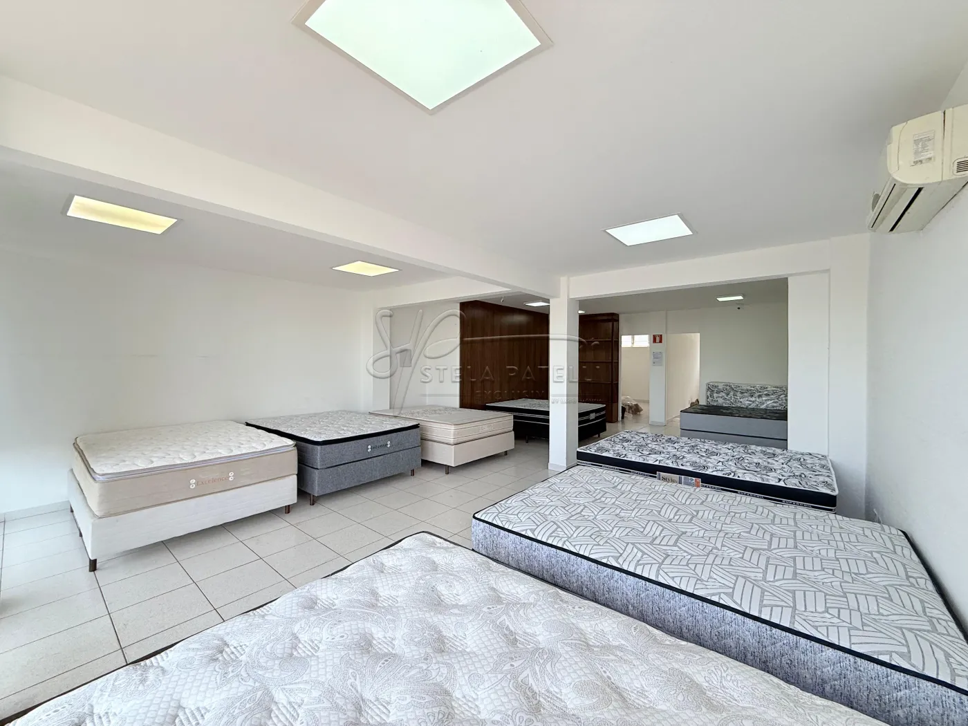 Salão comercial amplo com ar condicionado, fachada em blindex;
